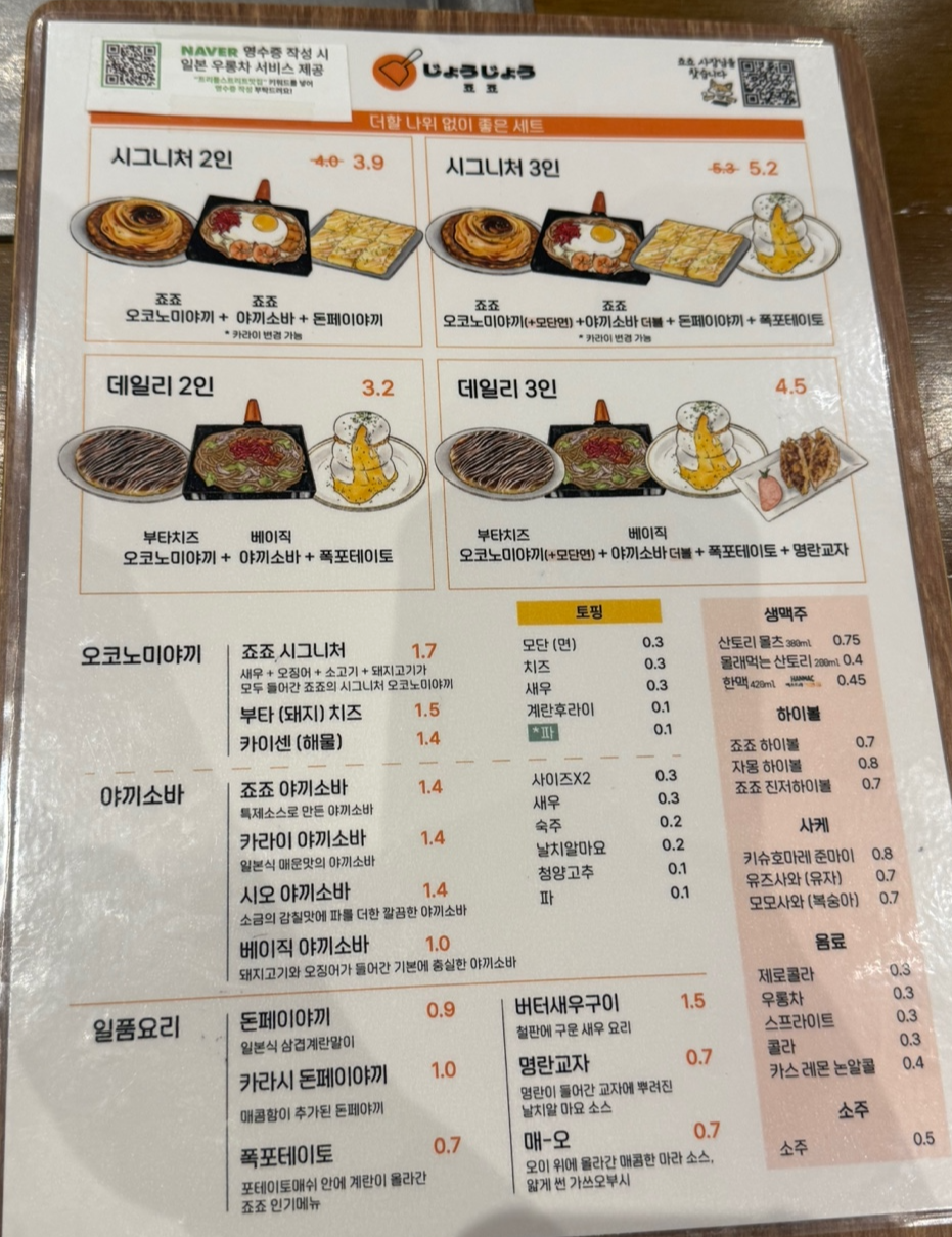 지난 주말엔 아내와 함께 죠죠 오코노미야키를 처음 방문해 봤어요.