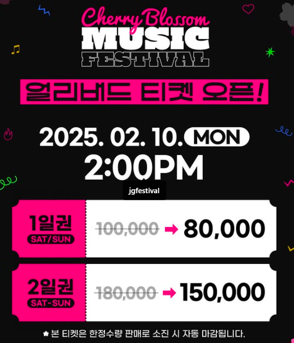대신, 뮤직페스티벌은 입장권 따로 구매하셔야 합니다. 벚꽃야행도 미리 사전예약해야 합니다.